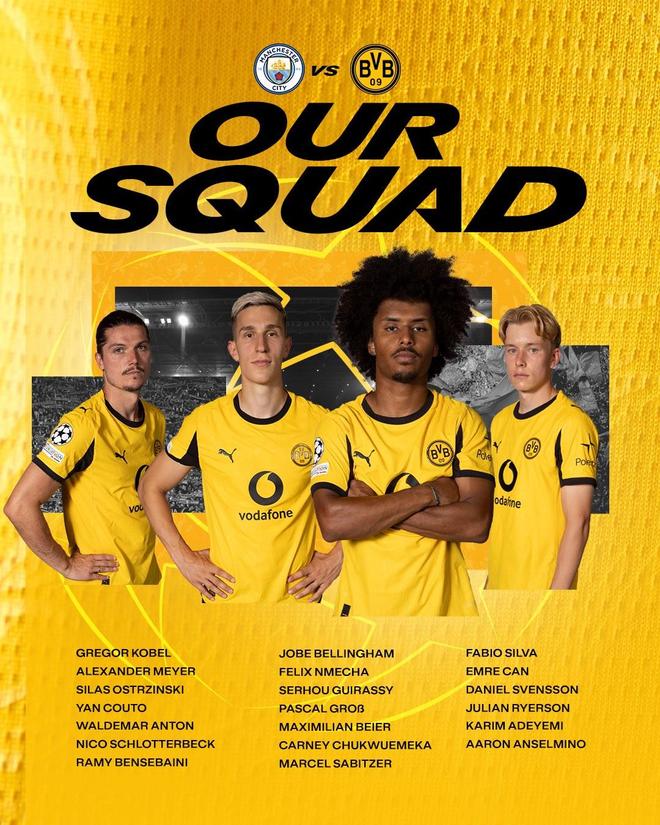 欧冠第4轮,多特蒙德将客场对阵曼城。多特蒙德于当地时间11月4日下午飞往英国,在出征前大黄蜂公布了球队大名单。