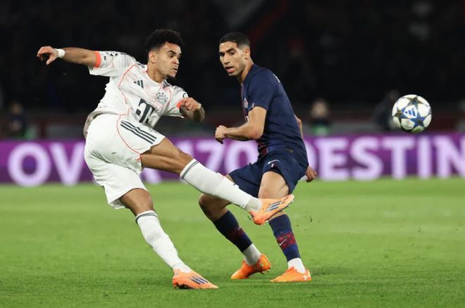 开场不到4分钟,巴黎主场被打穿了防线,奥利塞单刀机会打门被扑出后,迪亚斯马上补射破门,帮助拜仁1-0取得梦幻开局。第23分钟,登贝莱一度破门扳平,因越位在先被吹无效,巴黎继续一球落后,随后不久登贝莱提前伤退,李刚仁替补出场。第32分钟,马尔基尼奥斯后场带球被抢断,目送迪亚斯推射破门完成双响,帮助拜仁2-0再下一城。